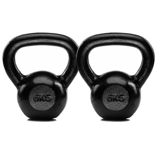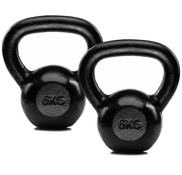 2 pesas rusas de 6kg cada una en hierro resistente color negro.